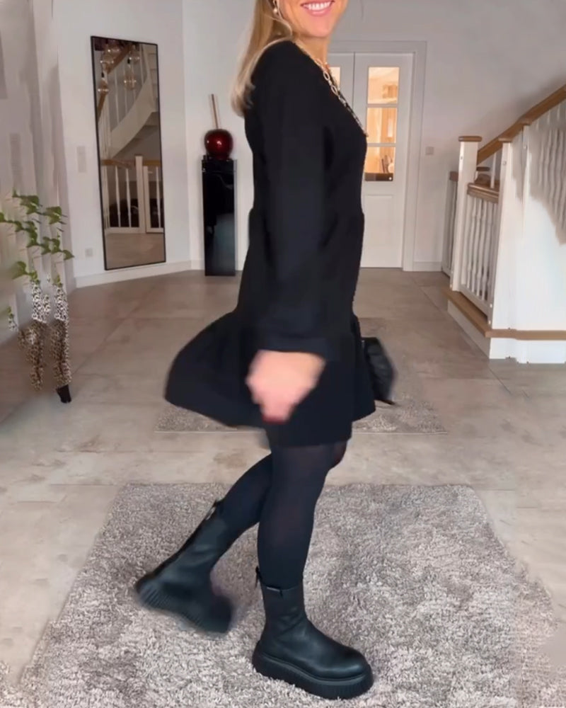 Einfaches langärmliges Kleid in einfarbiger Ausführung