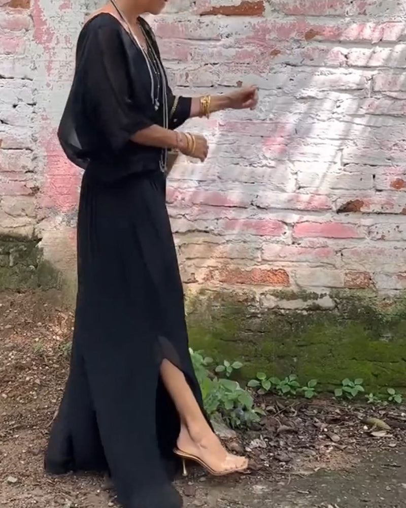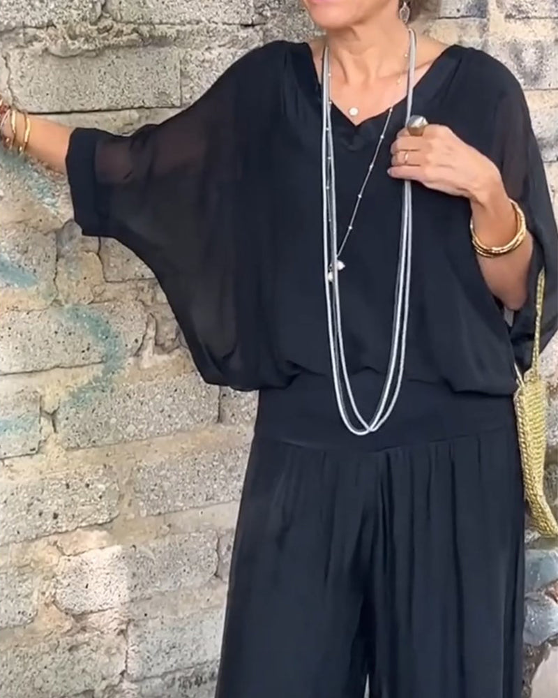 Einfarbiger V-Ausschnitt lässiger Zweiteiler