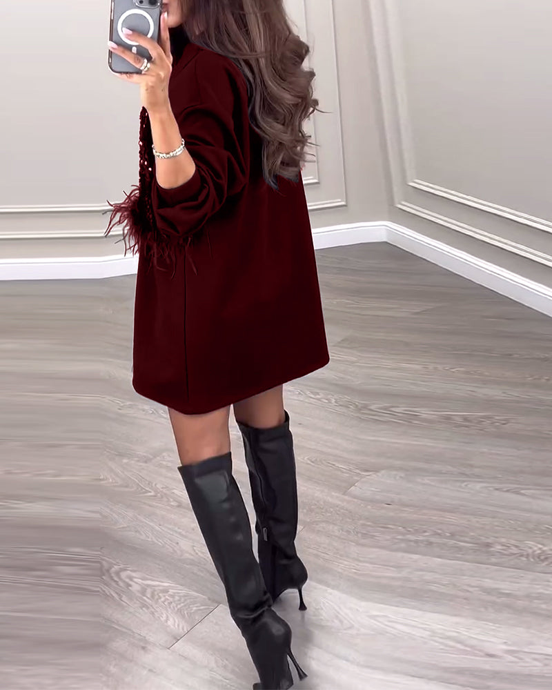 Mode einfarbig Pailletten Feder Patchwork Kleid
