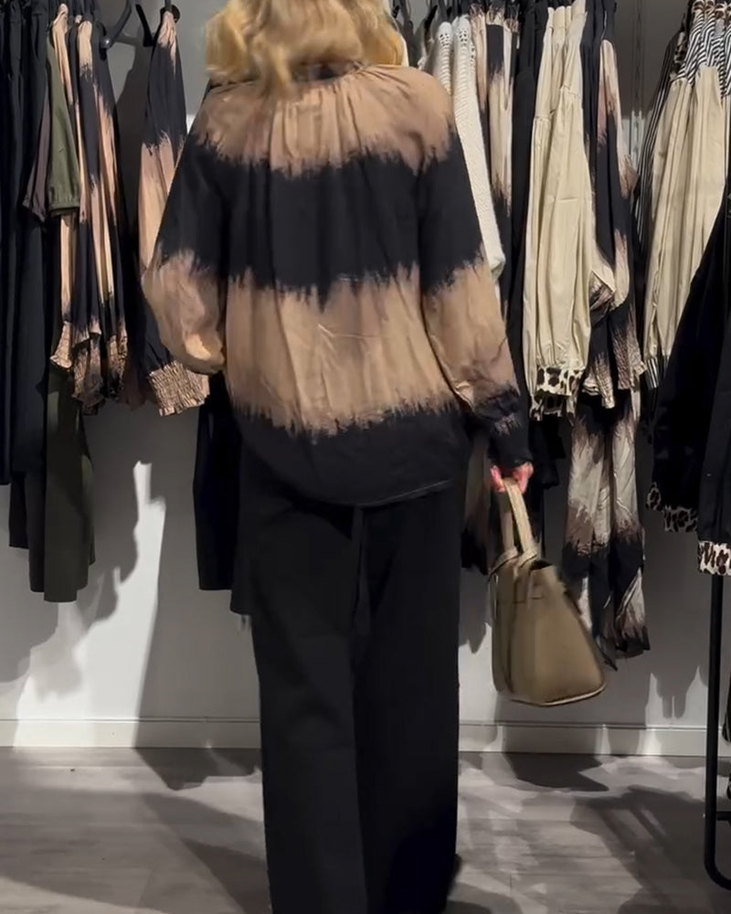 Vintage Farbkasten V-Ausschnitt Knopf Bluse